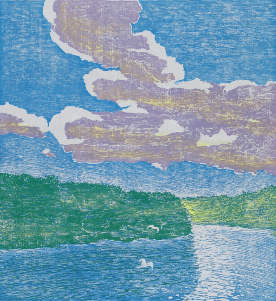 Great Blue Heron Woodcut Print 1996 19.5 x inches