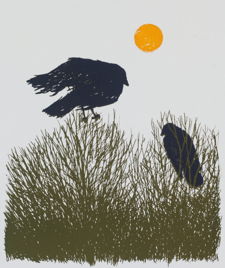 Treetop Crows Woodcut Print © 1978 7.5 x 7.125