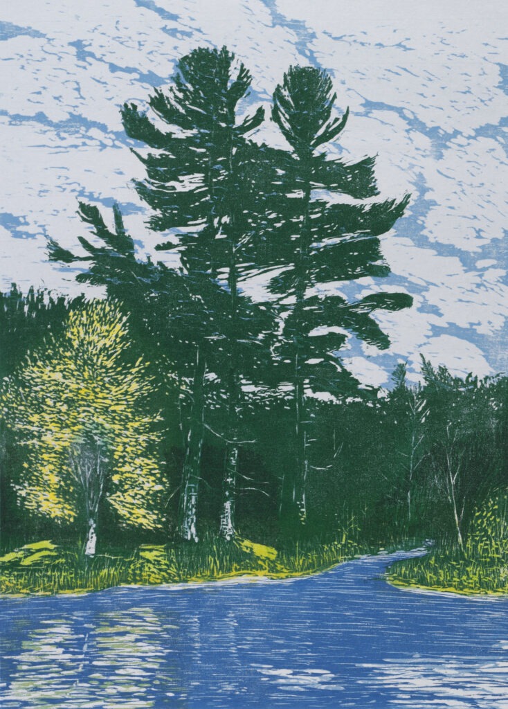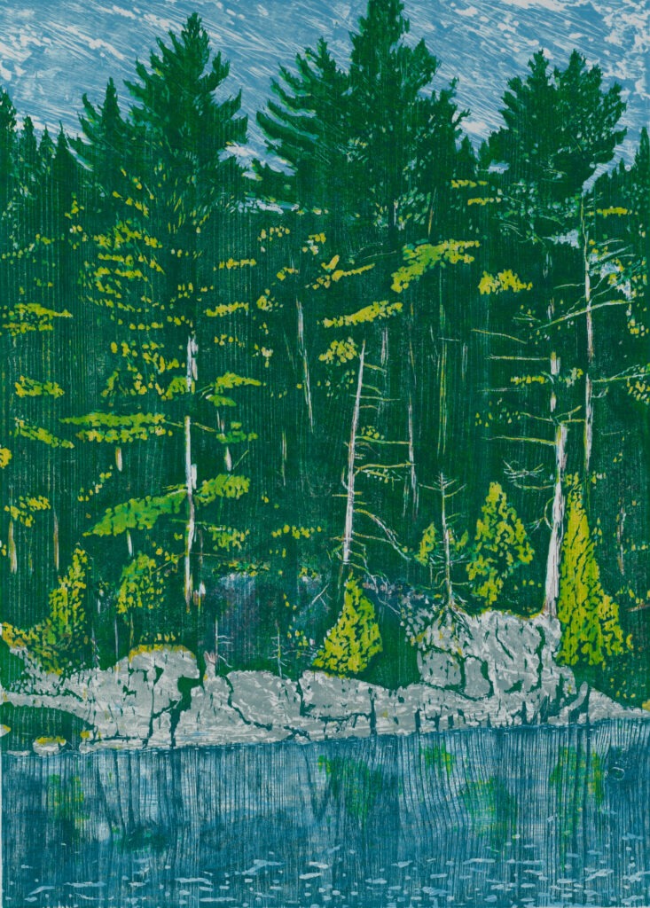 North Woods Lake Woodcut print 1990 24 x 17.25 inches
