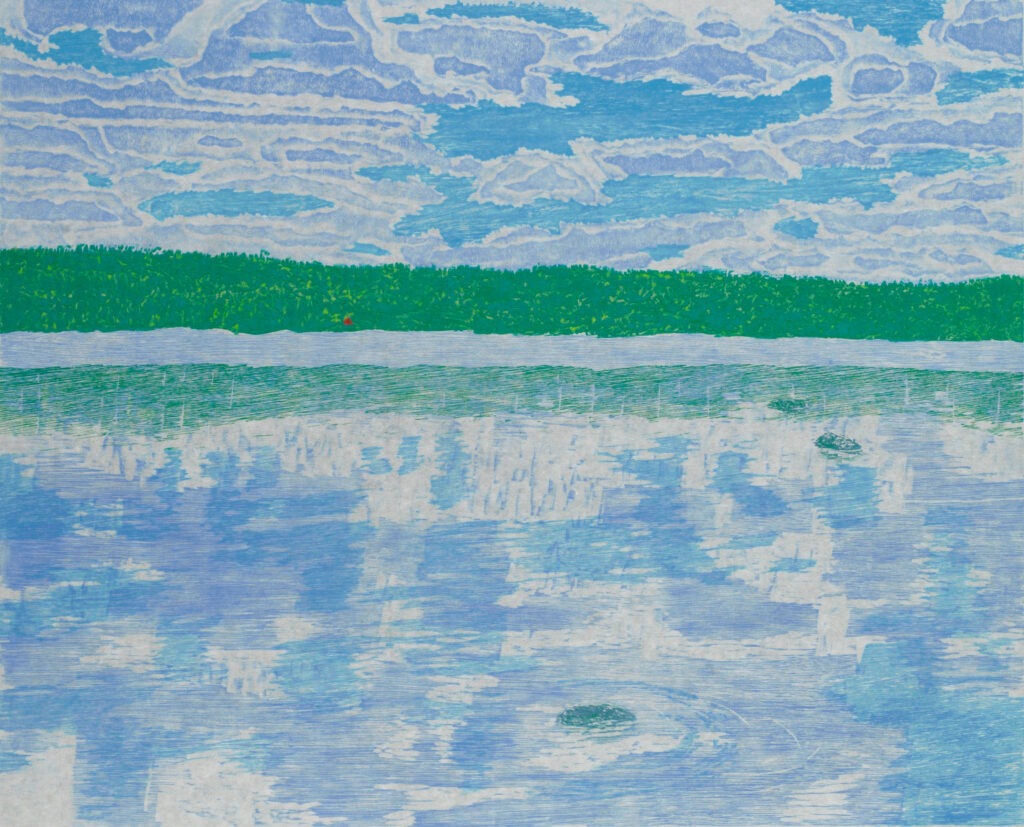 Granite, Lake and Flowers Woodcut print 1987 15 x 23 inches