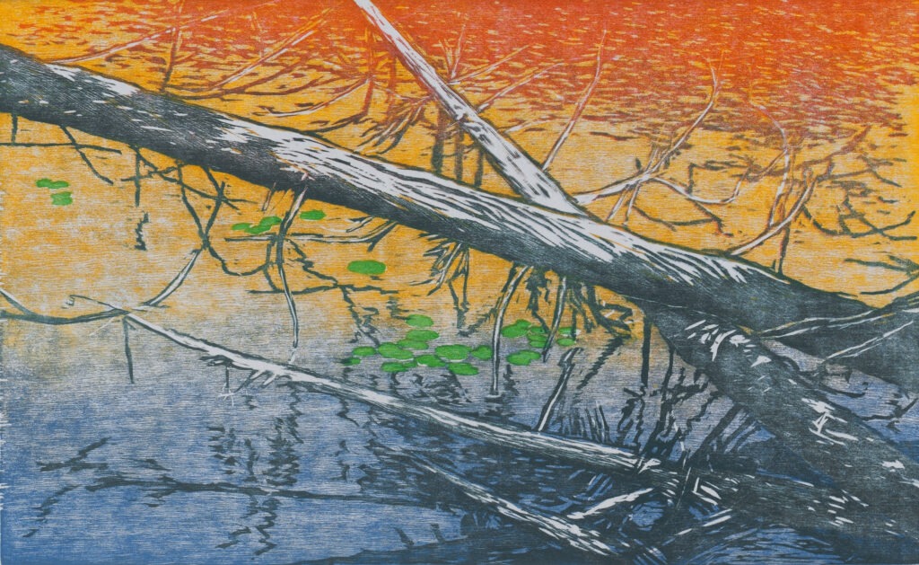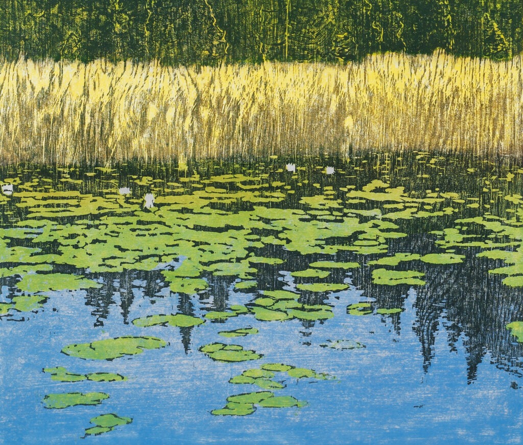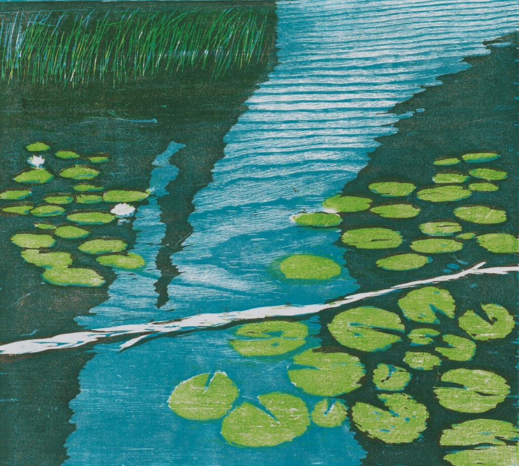 Bay with Lily Pads Woodcut print 1980 12.25 x 11 inches