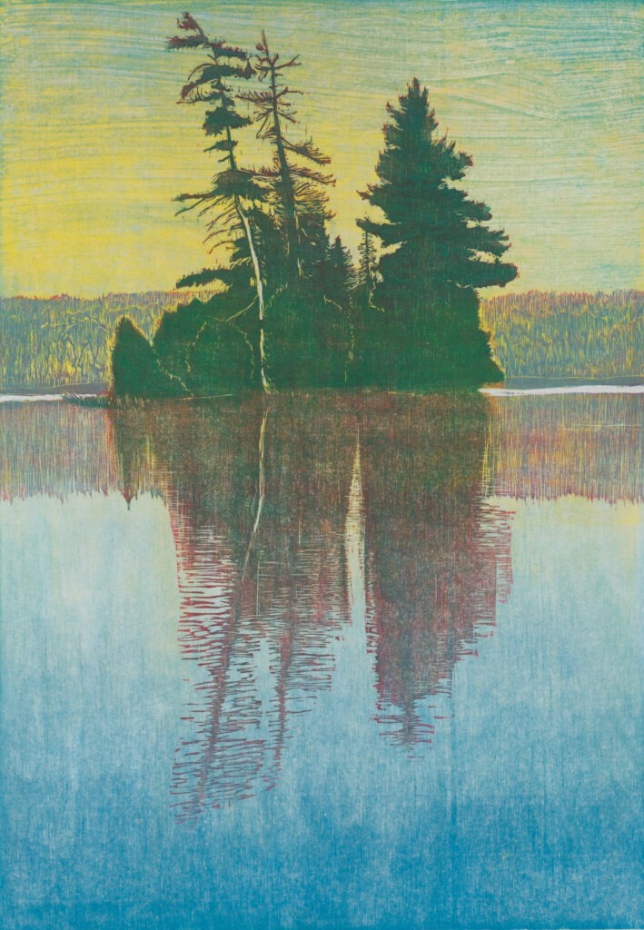 Lake Ottawa Morning Woodcut print mid-1970s 19 x 13 inches